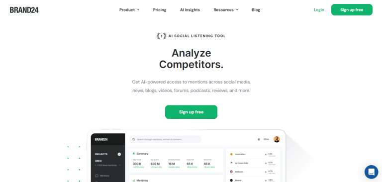 Description: Brand24 is a social media monitoring tool that uses AI to track and analyze online conversations about your brand, competitors, and industry.